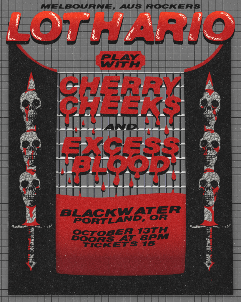 It’s past midnight here at Cherry HQ and I’ve been at it for a while creating a poster for an upcoming show on October 13th. This show will be headlined by Lothario, an absolutely rockin’ band from Melbourne, Australia.